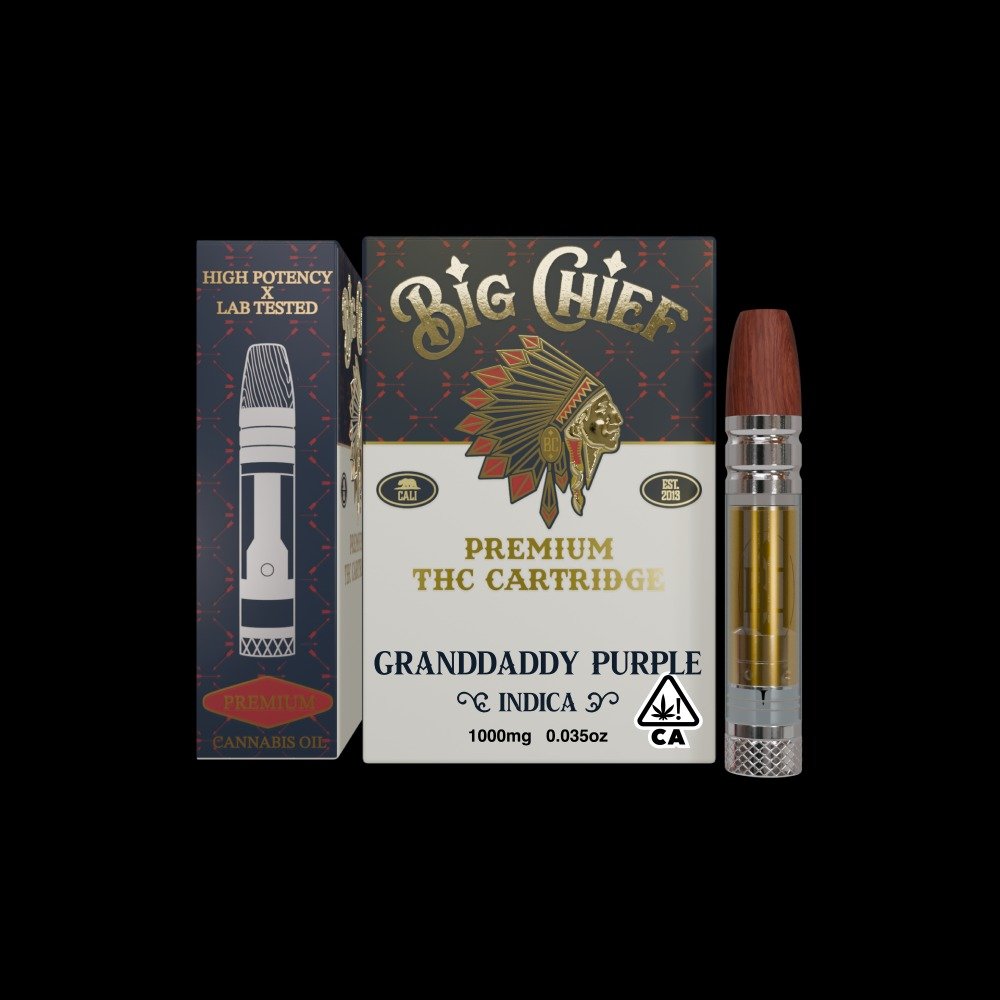 Big Chief GrandDaddy Purple 1 g THC Cartridge offers a quintessential, soothing indica experience—combining deep relaxation with rich berry flavor and high-quality engineering. Whether winding down to unwind stress or easing into sleep, GDP delivers reliably potent relaxation with smooth, flavorful hits.